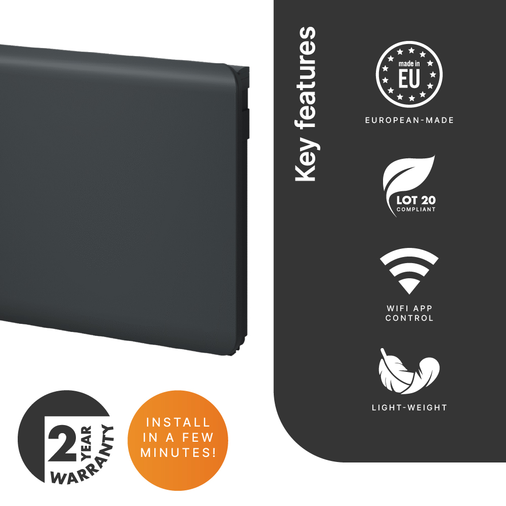2000W | Heats up to 20m² | 98 × 9 × 61cm (30kg)