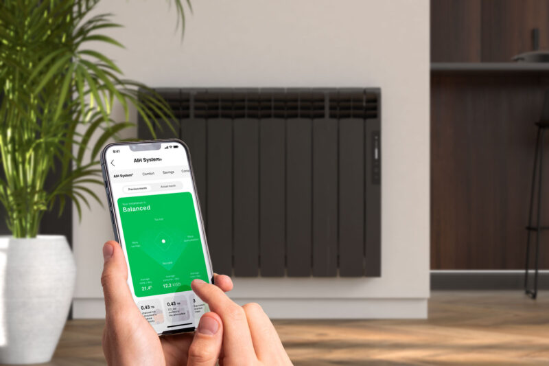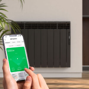 Full programing and access to the settings menus is taken care of using the free Rointe Nexa App, which can be shared with guests or tenants to allow them just the level of access that you wish. Inverter Smart Adaptive Tech is Rointe’s solution for managing a fast heat-up time with increased stabiliity in temperature and consumption throughout the heating cycle. AI technology is employed to assist even further. By monitoring the heating characteristics of the space, the energy use and also the heating schedules set by the user, Rointe’s newly-introduced AI technology makes dynamic recommendations through the Nexa App on how to optimise both comfort and energy efficiency.